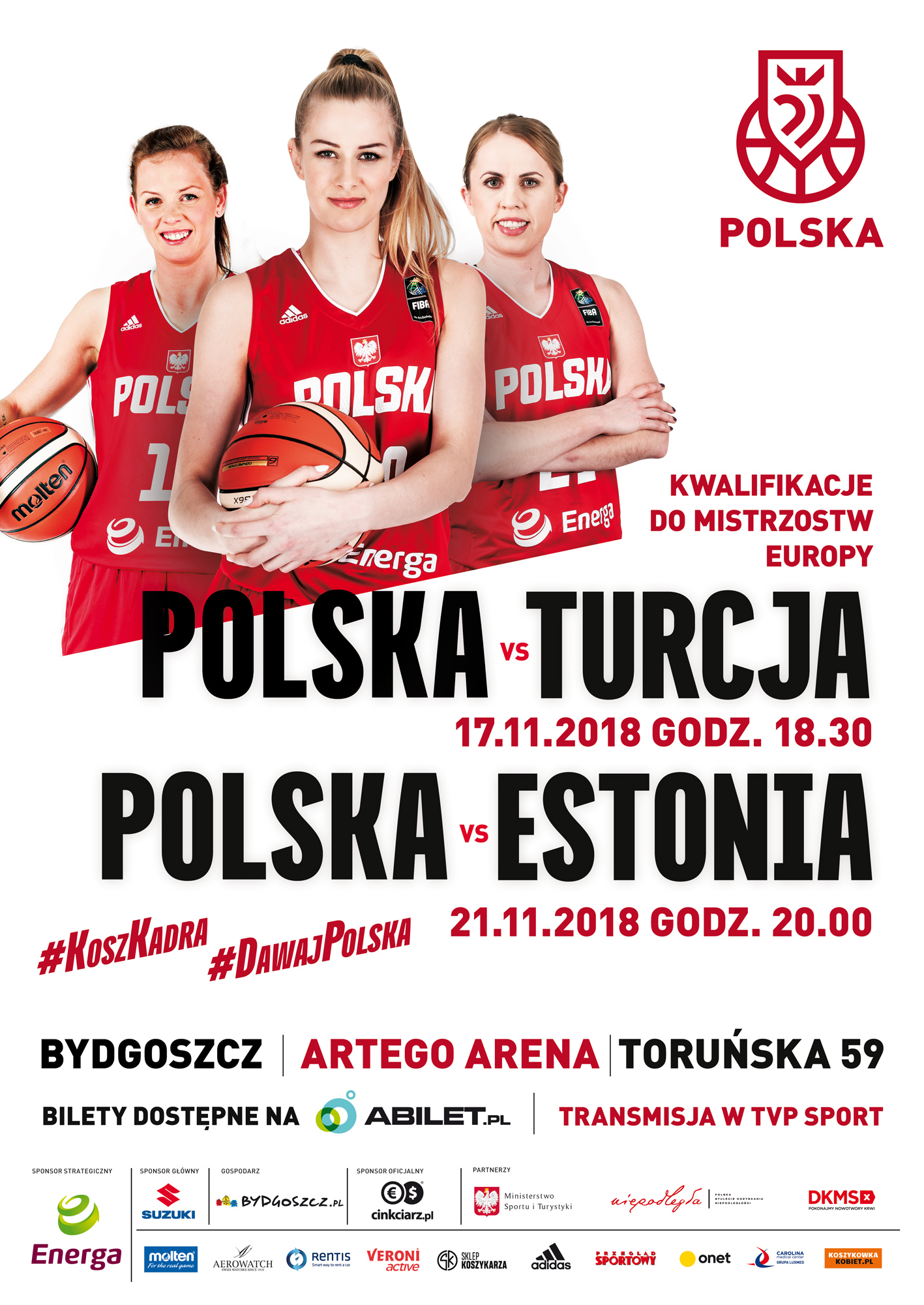 Reprezentację Polski kobiet czekają dwa ostatnie mecze w kwalifikacjach do Mistrzostw Europy 2019. Kadra zagra 17 listopada o godz. 18.30 z Turcją i 21 listopada o godz. 20.00 z Estonią w Artego Arenie w Bydgoszczy. Tym samym po raz kolejny będziemy mogli zobaczyć naszą, narodową reprezentację w województwie kujawsko-pomorskim!