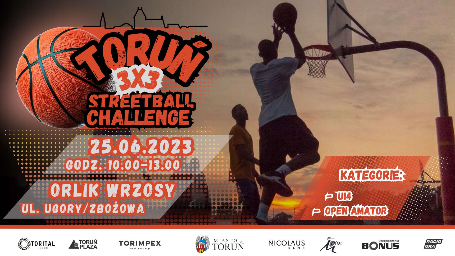 Miejski Ośrodek Sportu i Rekreacji i Stowarzyszenie Go Sport! zapraszają na pierwszy amatorski turniej koszykówki TORUŃ 3x3 STREETBALL CHALLENGE. Wydarzenie odbędzie się 25 czerwca 2023 na toruńskich Wrzosach.