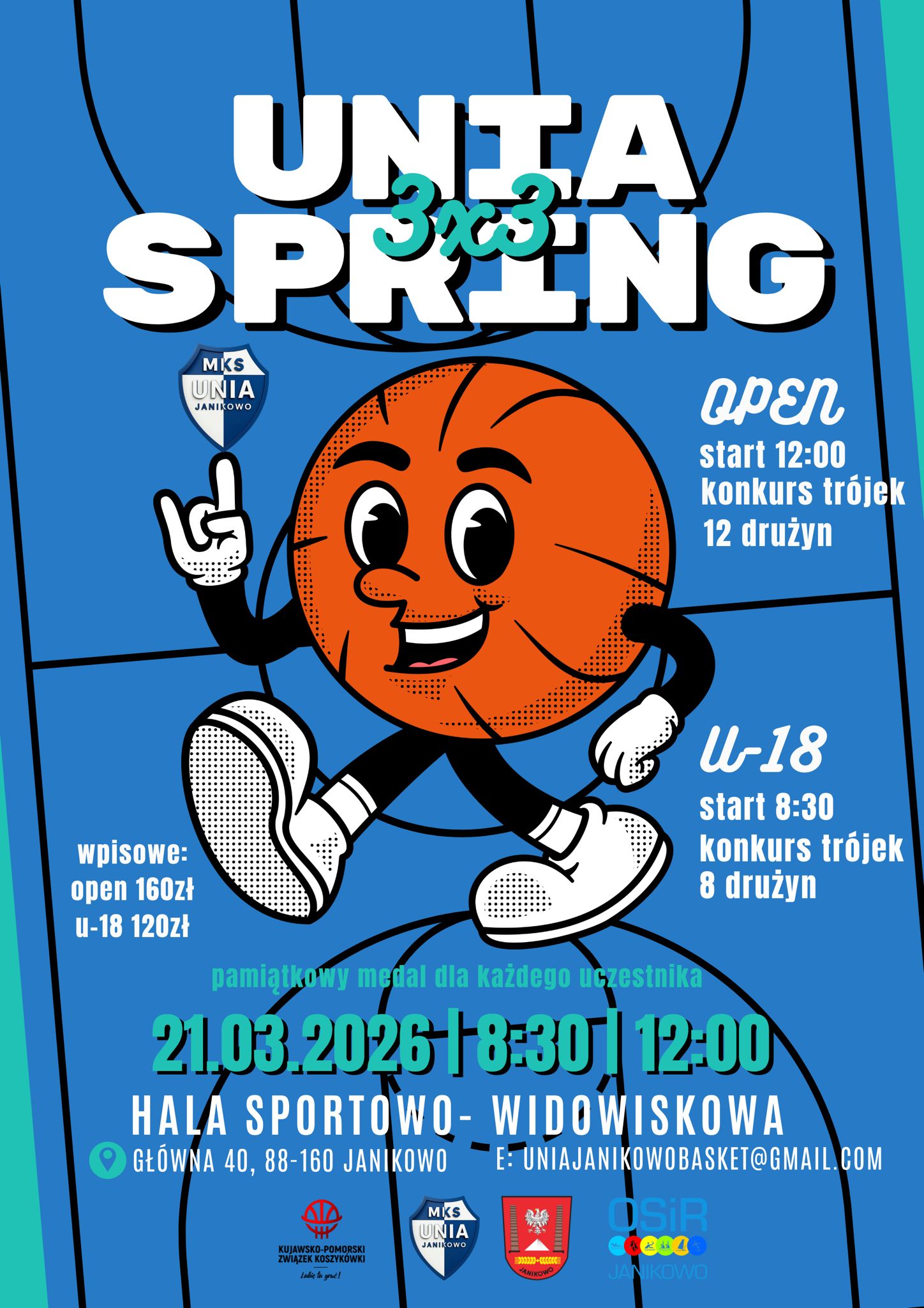 Wydarzenie odbędzie się w hali sportowo-widowiskowej przy ul. Głównej 40 w Janikowie. UNIA SPRING 3x3 to nie tylko dynamiczne pojedynki w formule 3X3. W programie znalazł się również konkurs rzutów za trzy punkty, który tradycyjnie dostarcza wielu emocji zarówno zawodnikom, jak i kibicom.